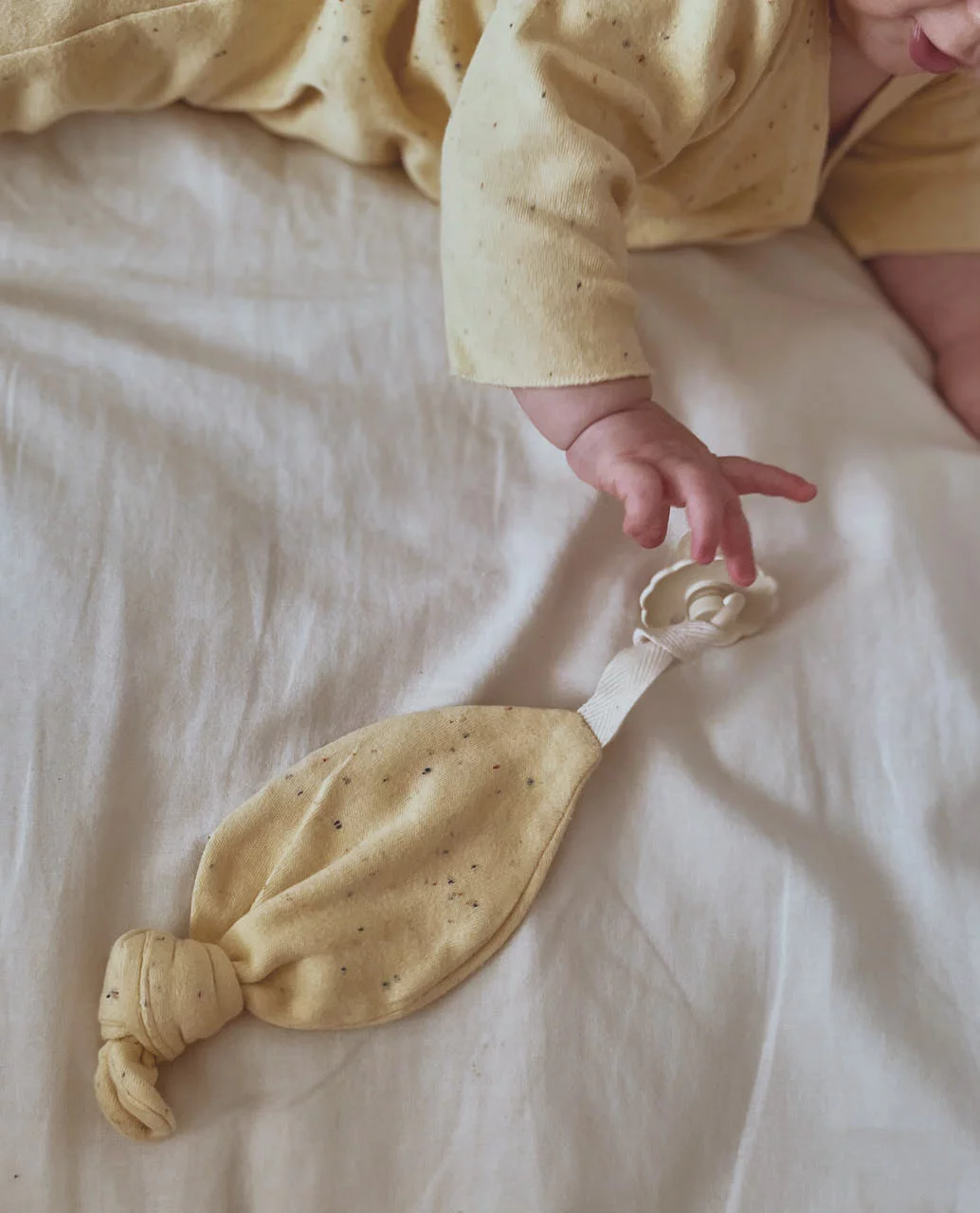 Chupetero color banana de doble capa de 39×10,5cm. Con diseño funcional, ligero y manejable. Cinta de espiga y nudo ajustable. Logo bordado hecho a mano. Perfecto para usar como doudou y secar el exceso de babas, su doble capa ayuda a mantener la piel de tu bebé libre de irritaciones y erupciones. Este chupetero no solo estimula su motricidad fina, sino que también fortalece su autonomía y la fuerza en sus manos. Además, en épocas de transición, brinda un reconfortante apoyo. Materiales 100% seguros, tintes skin-friendly y diseño enfocado en la comodidad del bebé y la funcionalidad de la prenda. Cuidados: Lavar a máquina máx 30ºC. Centrifugado corto. No usar lejía. Planchar máx 110ºC. No limpiar en seco. No usar secadora.