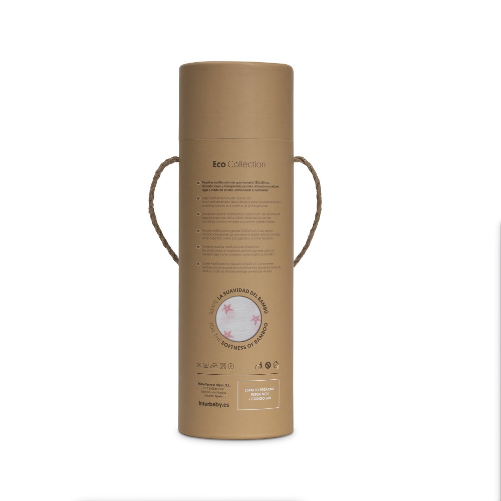 Esta muselina no es una cualquiera: es grande (120 x 120 cm), es extra suave, y está hecha con algodón 100% que respira y mima la piel de tu bebé como un abrazo suavecito. Pertenece a la colección Eco Collection de InterBaby.