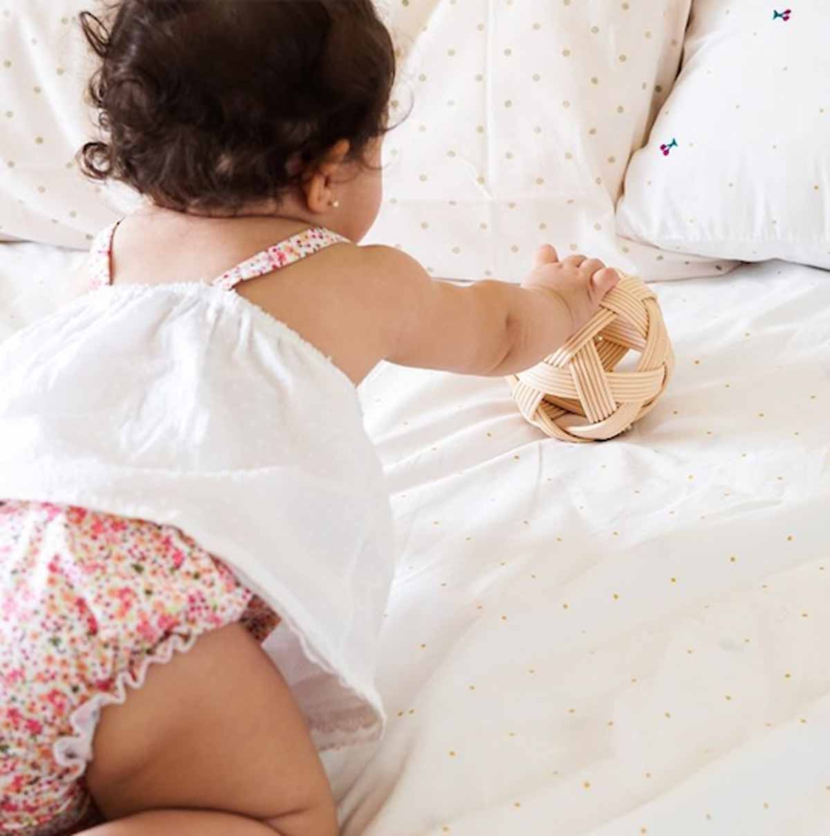 La Pelota Pikler es un juguete pedagógico diseñado para estimular el desarrollo motor y cognitivo de los niños. Esta pelota promueve la exploración y el juego activo, fomentando el equilibrio, la coordinación y la percepción espacial. La Pelota Pikler es un elemento de juego adecuado y respetuoso con la etapa de crecimiento del bebé. Deja que la manipule, la observe, la agarre, la deje ir… Médula de bambú. Fabricación artesanal. Realizada en España. A partir de los 3 meses.