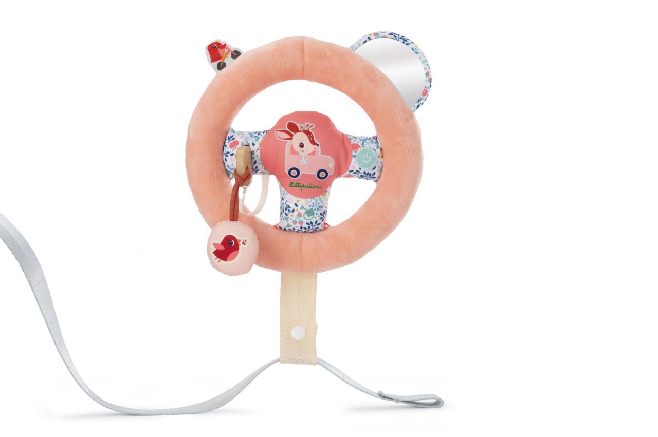 Abróchate el cinturón, ponte al volante y arranca el coche: ¡ha llegado la hora de la aventura! ¡Vrooom-vroom, tut-tut! No olvides mirar por el retrovisor, ¡o el pajarito podría ganar la carrera! Este volante desmontable que se sujeta al cinturón de seguridad del asiento del automóvil es perfecto para reproducir las acciones de los adultos, al tiempo que estimula la imaginación del niño. Lavable a máquina a 30ºC  – Ciclo delicado